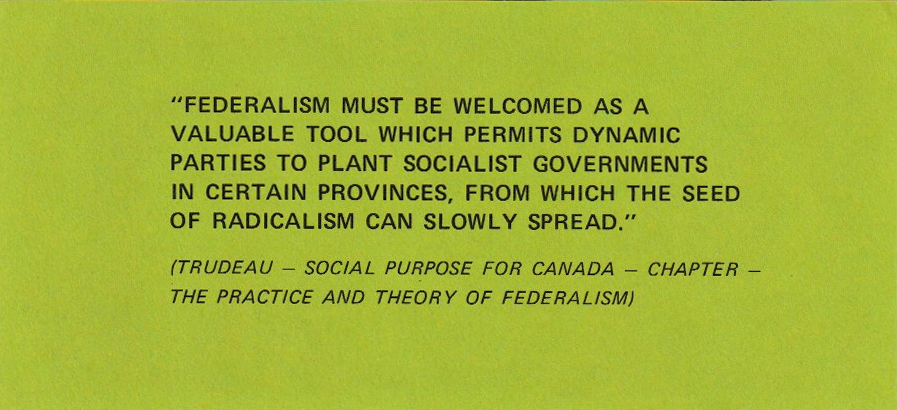 « Federalism must be welcomed as a valuable tool which permits dynamic parties to plant socialist governements in certain provinces, from which the seed of radicalism can slowly spread. »