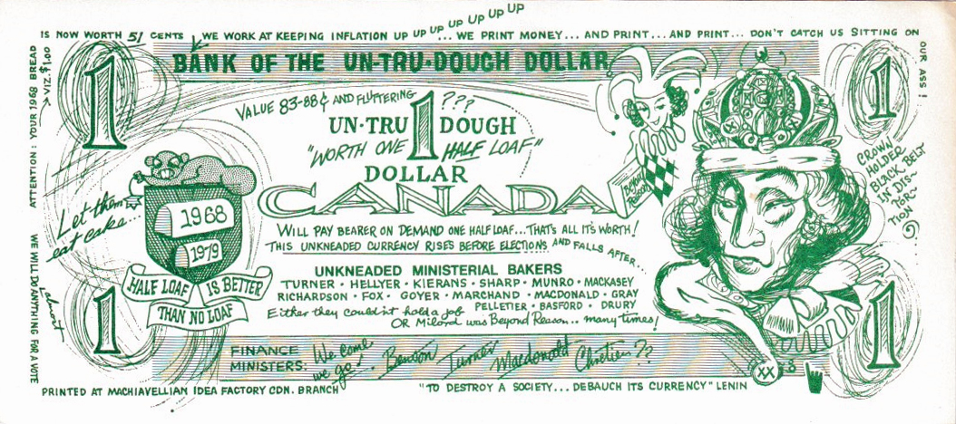 - Appellation : « Dollar Trudeau couronné »; « Un-tru-dough dollar ».