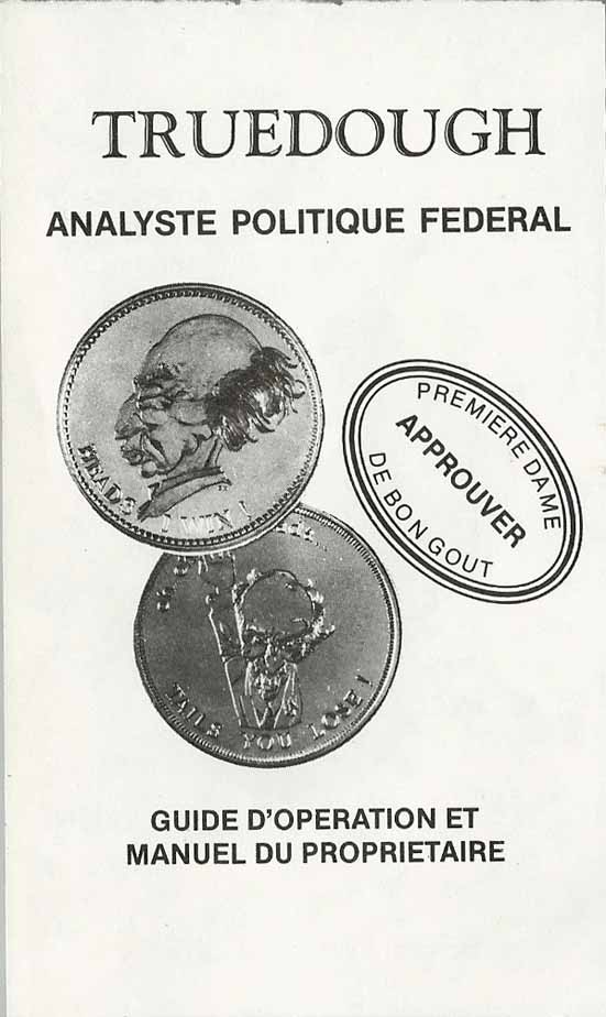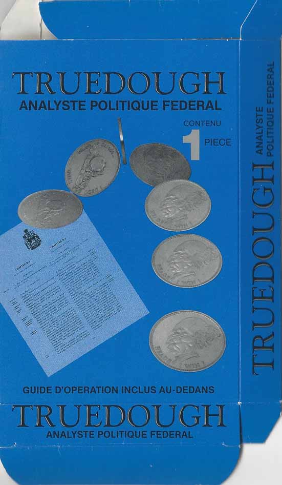 Son créateur, Art Mooney – de la compagnie National Coin Fusions – l’a inséré dans ce qu’il appelle le Federal Policy Analyst – l’Analyste politique fédéral, dans sa version française – dont le mode d’emploi lui permet de caricaturer la politique gouvernementale.