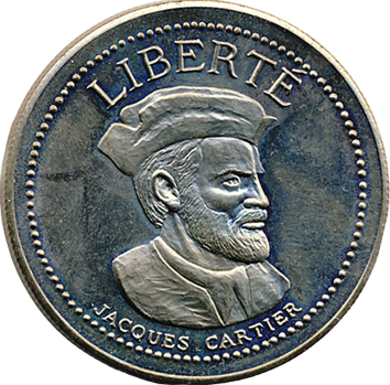 Portrait de Jacques Cartier, surmonté du mot « Liberté ».